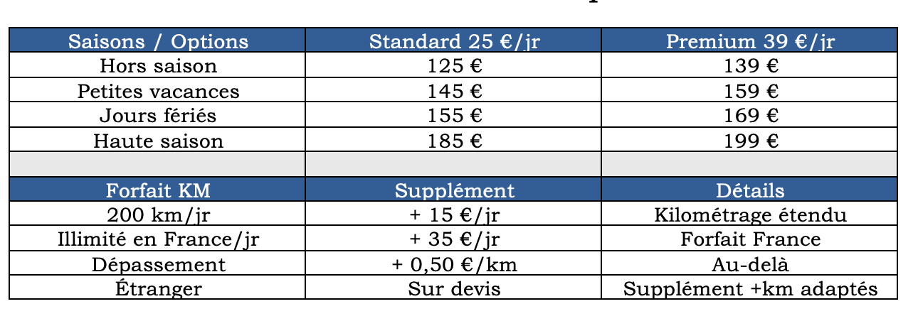 Van Life Location propose deux tarifs simples.